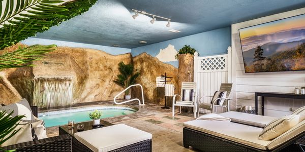 The Indoor Pool is heated, with a waterfall providing soothing sounds as you unwind. Dual Chaise lounges provide maximum relaxation, with ample seating for watching a movie on the 86" wall mounted TV. Perfect for a home theater experience while taking a dip!